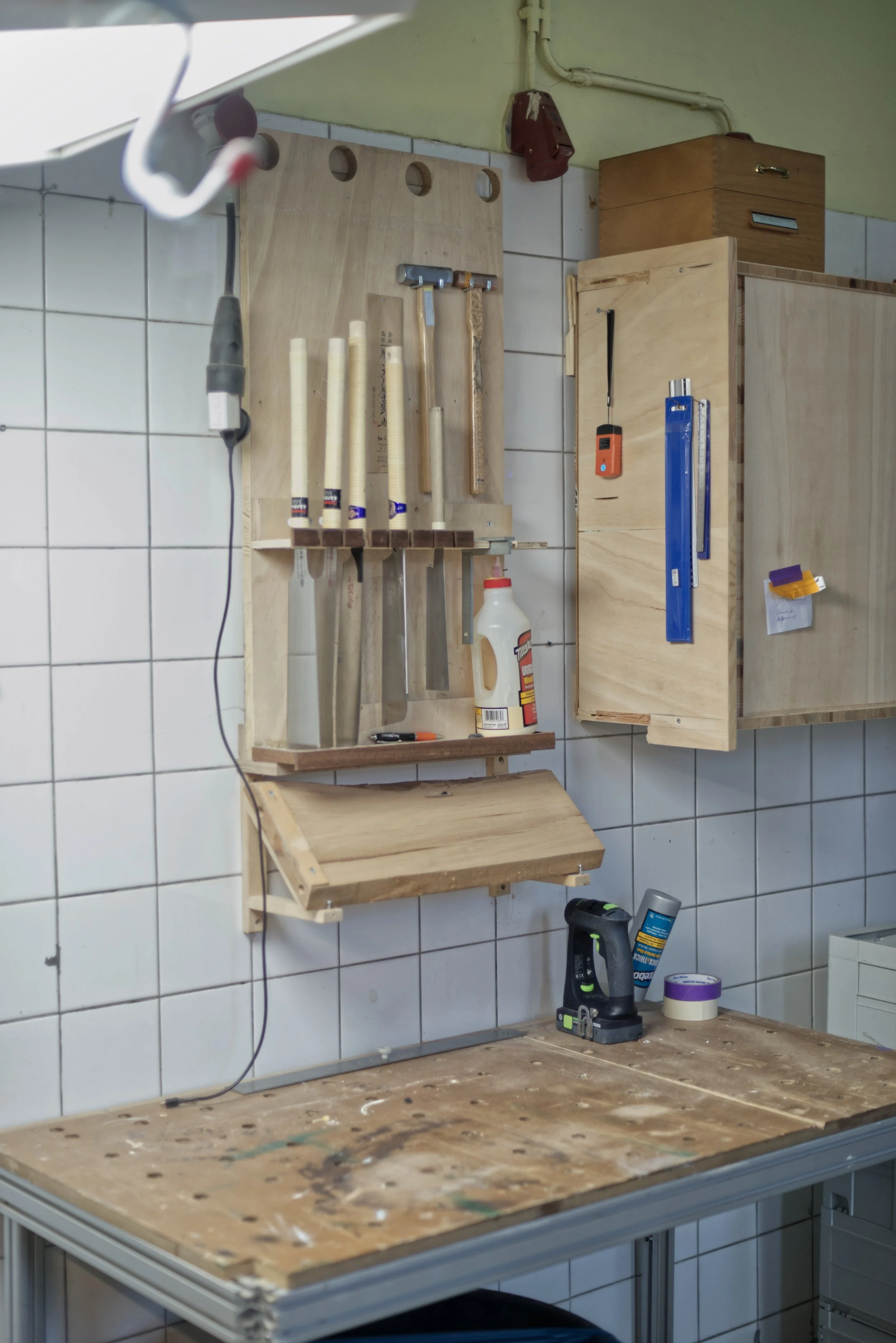 Unsere Werkstätten sind polytechnisch ausgerichtet. Neben der Tischlerei stehen uns Techniken wie WIG-Schweißverfahren, 3D-Druck und Buchbinderei zur Verfügung. In der Tischlerei können wir auch kurzfristig Displays, Sockel, maßgefertigte Bilderrahmen und Ausstellungsmöbel herstellen. Massivholz, Plattenmaterial und sämtliche Holzwerkstoffe können genutzt werden.